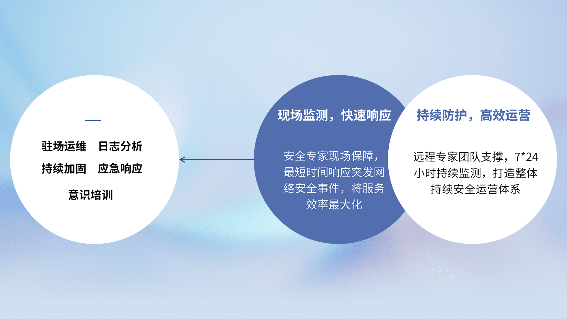 针对客户行业特性,,,提供专属的一站式安全管理服务,,,帮助客户全面感知网络空间威胁,,通过安全专家的线上、、线下防护支持,,,实现风险闭环,,将安全保障常态化,,,为客户打造常态化安全运维运营服务。。。